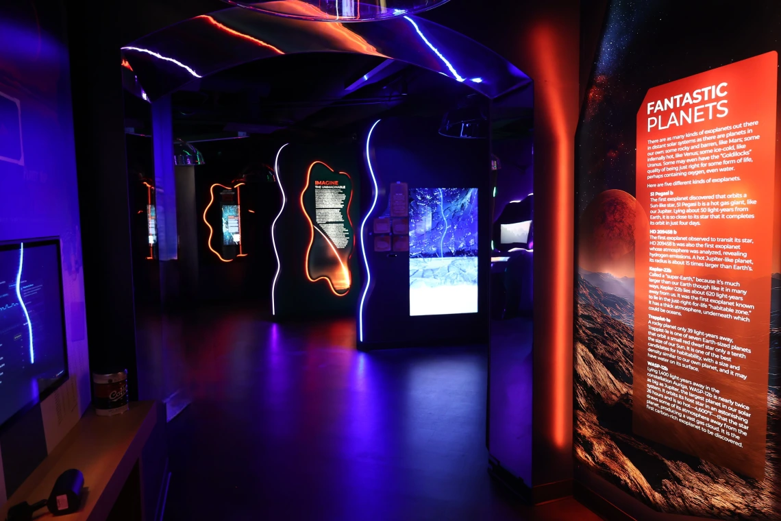 Now that you've left the comforts of Earth, more discoveries await you. Study exoplanets using real data from the James Webb Space Telescope, ponder the possibilities of life in other solar systems, and meet some possibilities of what life might look like on other worlds using a visual simulator that follows your movements.