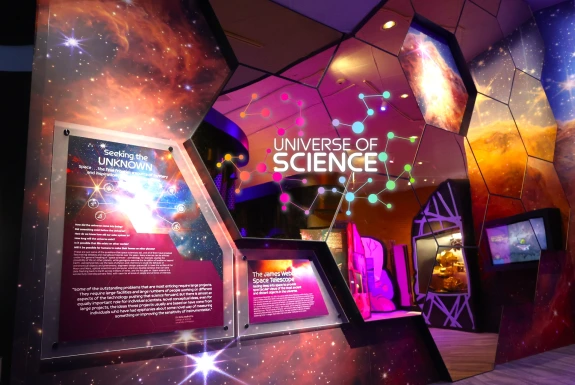 Explore an interactive, technology-driven exhibit connecting the visitor to wondrous worlds of science. Journey through immersive displays and interactives to see yourself in science! You'll unravel the mysteries of the human brain, discover how the James Webb Space Telescope peers into distant solar systems, determine the conditions needed to create a monsoon rainstorm, and uncover fascinating science facts along the way. You'll also have access to interviews with over 30 University of Arizona researchers through our "Ask a Scientist" kiosks.